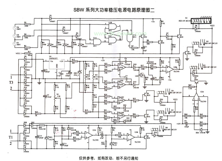 电压检测电路是由采样、整流、滤波、稳压及经电压比较后给出控制指令驱动伺服电机正转、反转或停转的控制电路。 自起动电路的作用是当市电停电后重新来电时,稳压器能自动启动送电,不需人工启动。